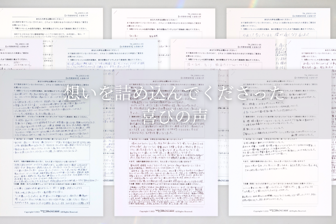 心配いらないし、安心してお任せできます。全身が少しずつでも確実に良くなっています。